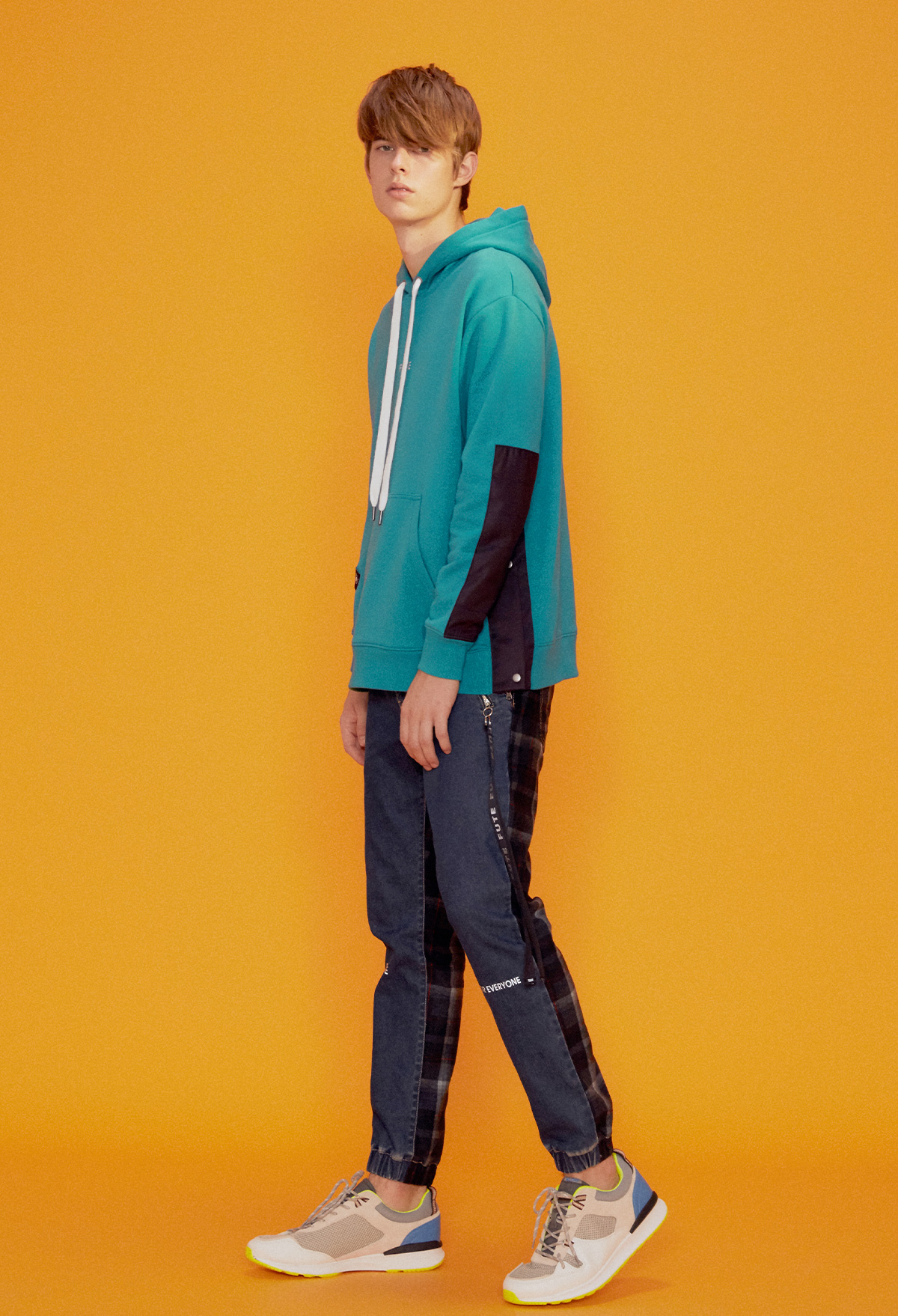 - 袖子 / 側邊配布拼接。