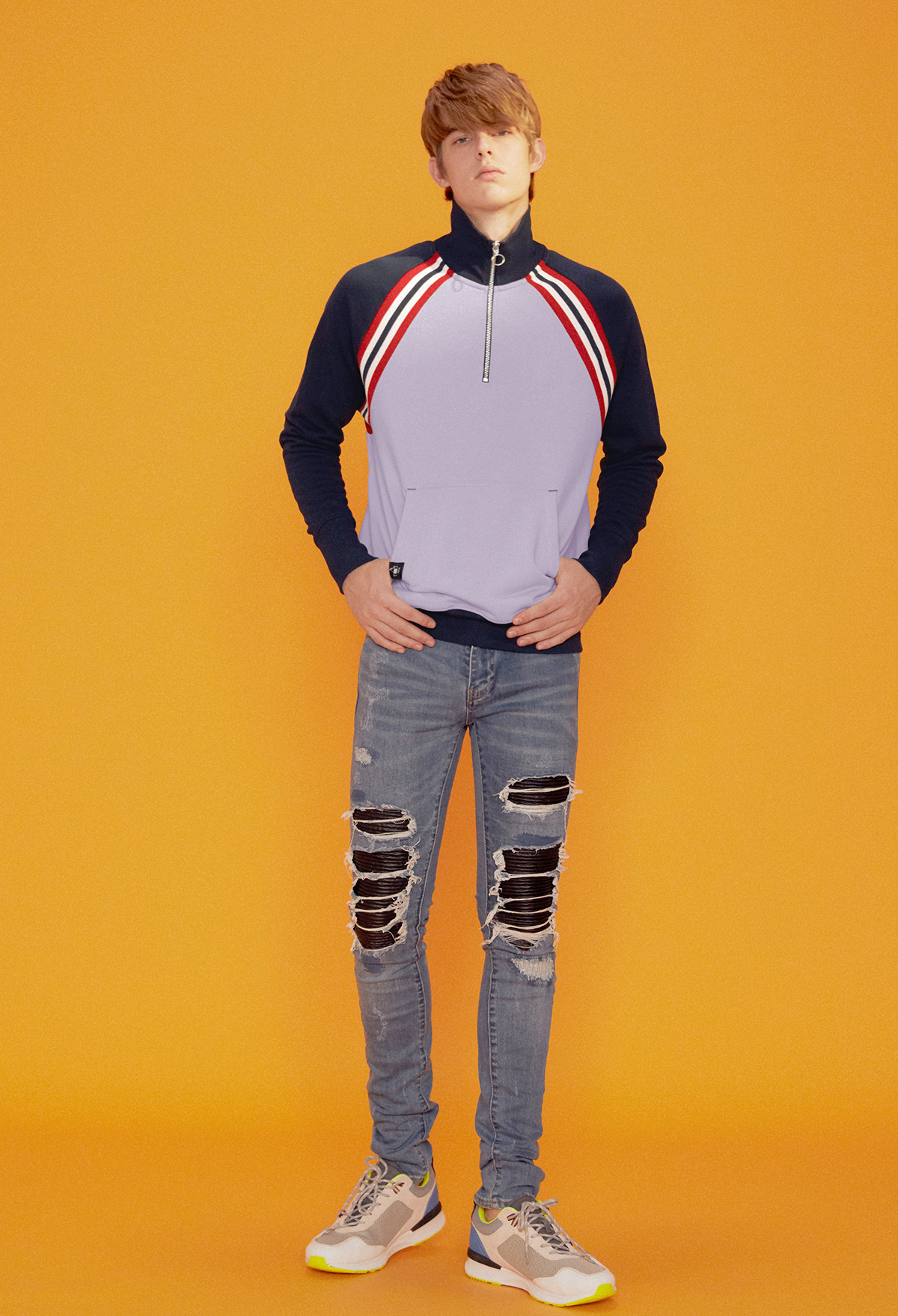 - 立領拉鍊款式。