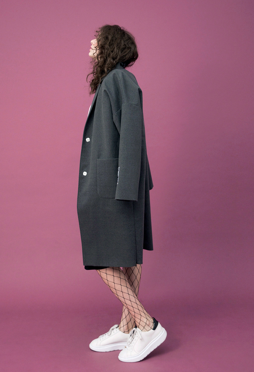 擷取長版飛行夾克特色,搭配 FUTE 招牌寬裝版型和落肩袖設計,讓男女生皆可輕鬆駕馭。可反轉的雙面布料設計,一件外套可以穿出兩種風格。穿搭方式如一般Over Coat較具街頭感,也可採用簡約的Monotone表現。