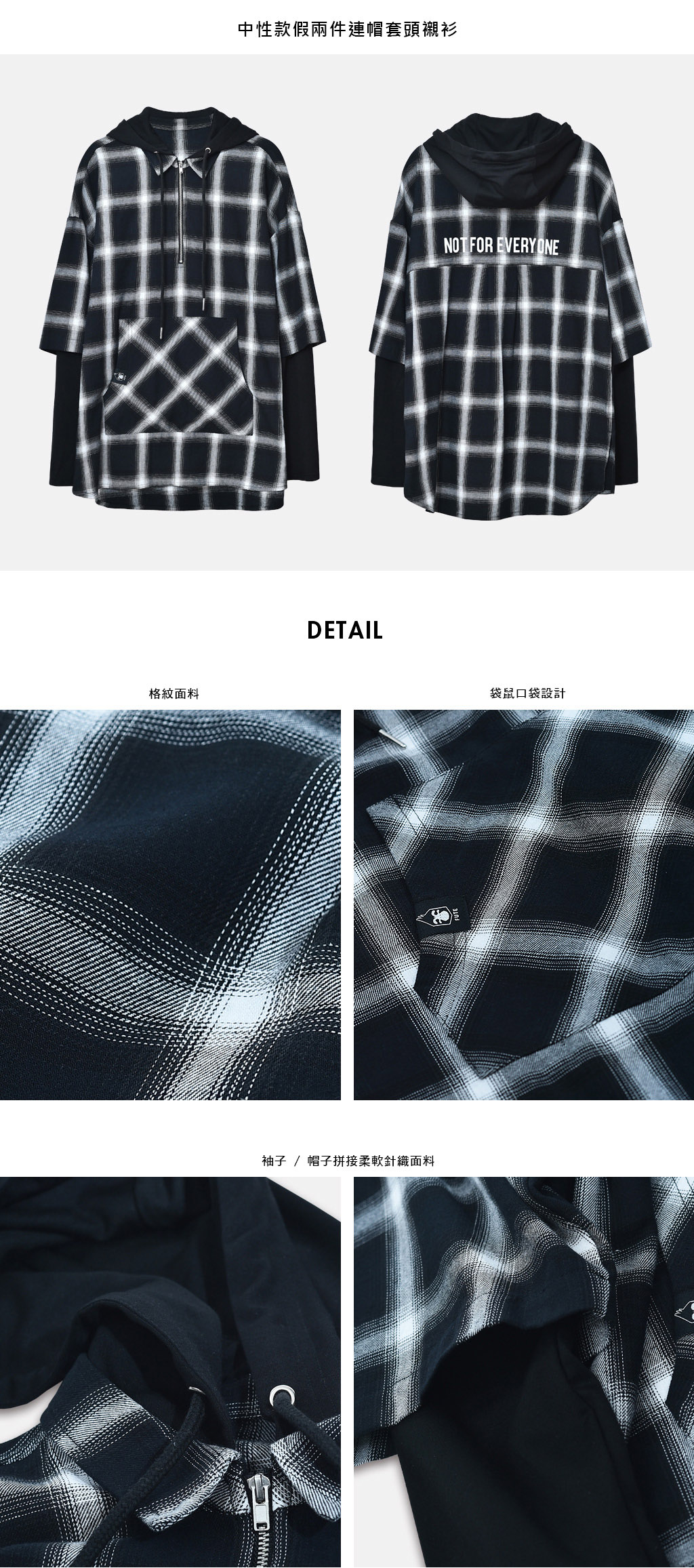 – 袖子 / 帽子拼接柔軟針織面料。