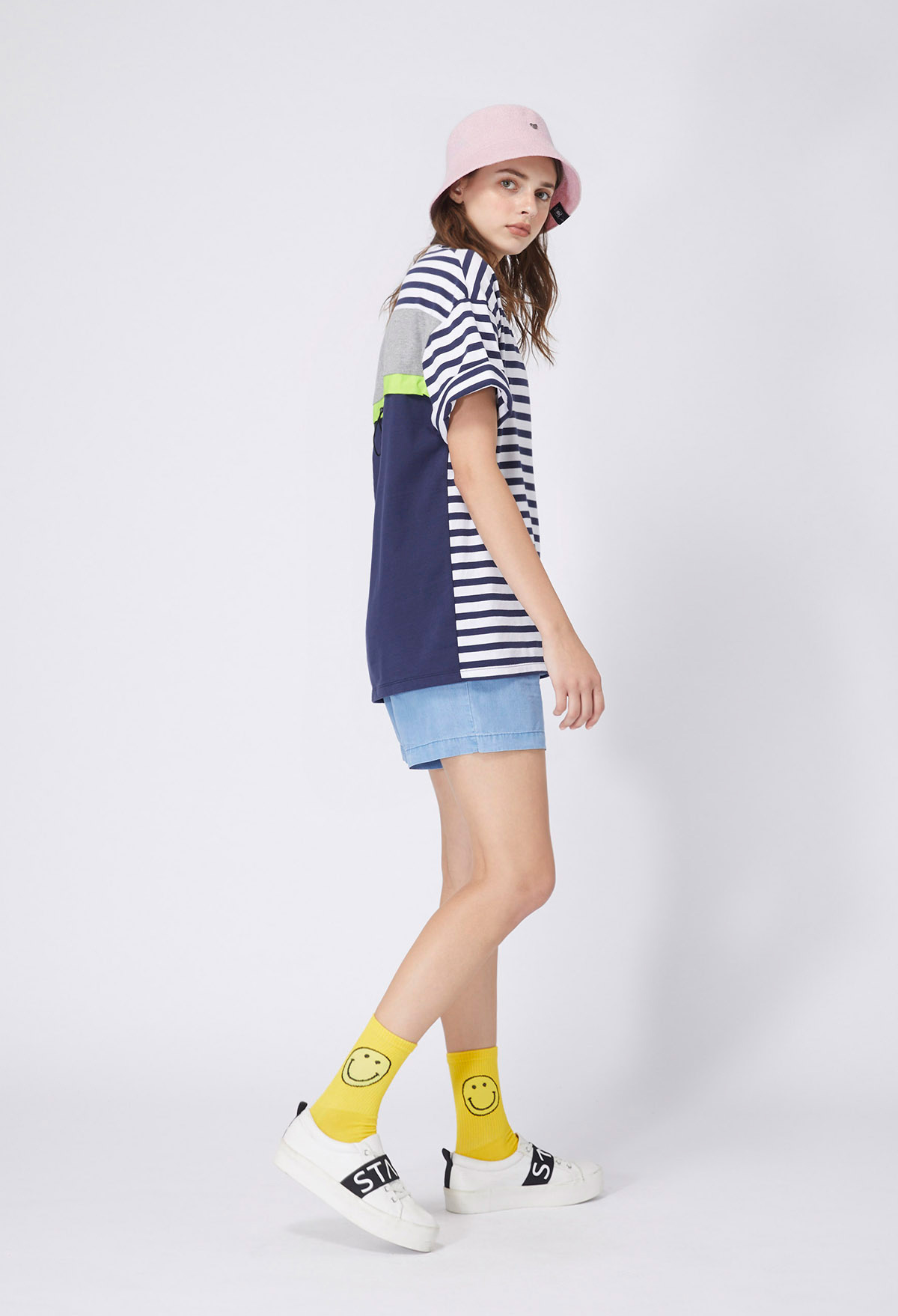 - 素色+條紋棉質面料。
