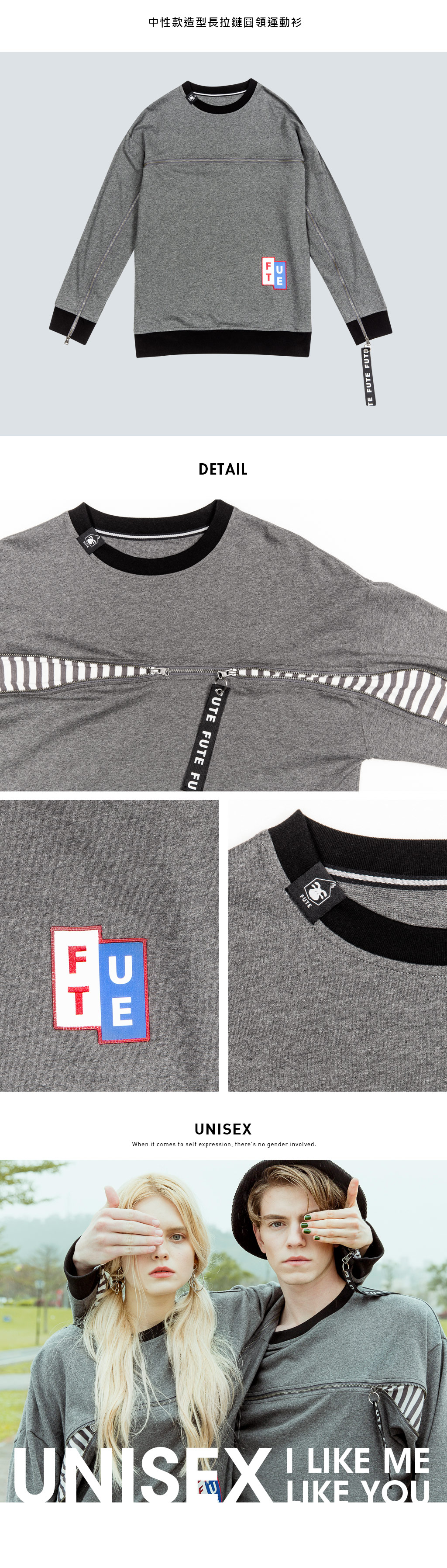 – 袖子連接前衣身超長金屬拉鍊+條紋檔布設計