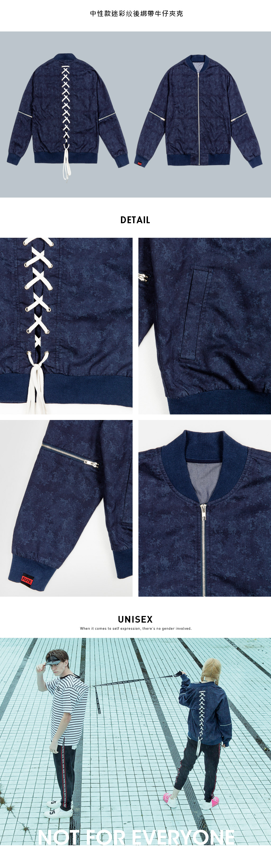 – 袖中金屬拉鍊裝飾設計